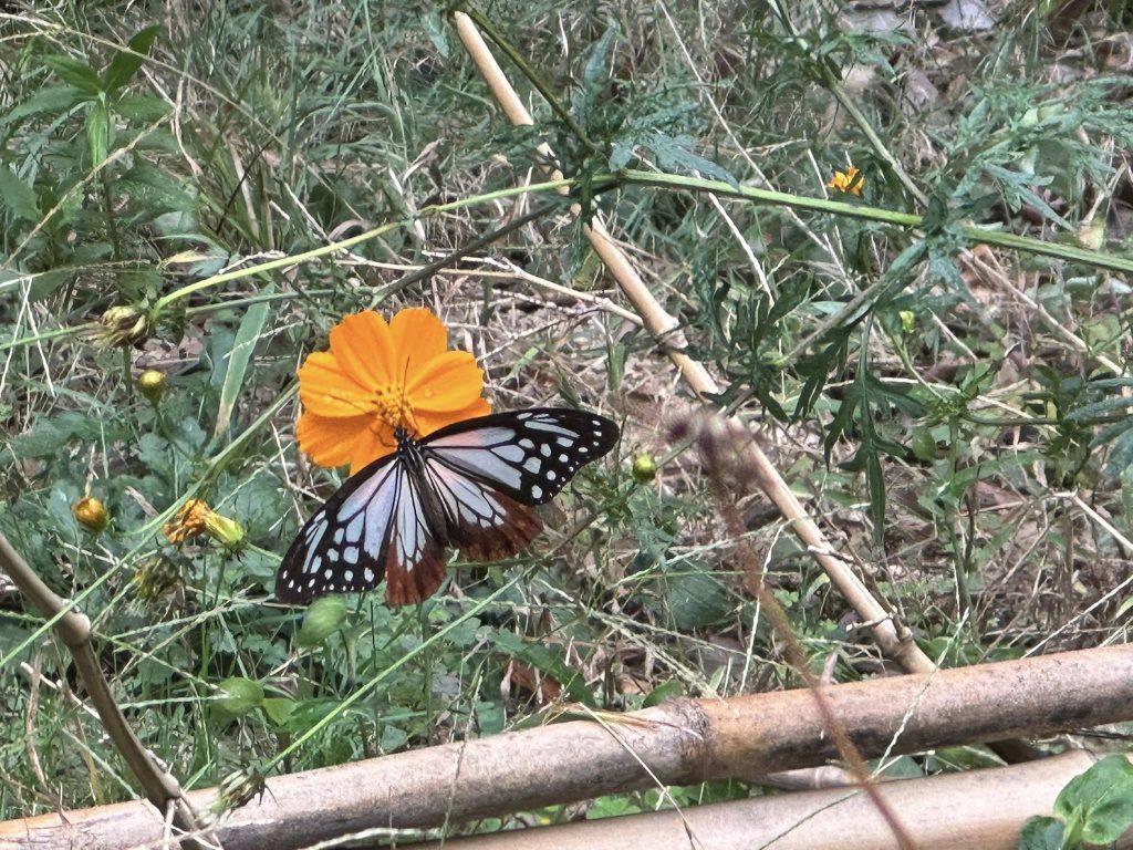最近すっかり山歩きにはまっていまして、先日の日曜日も午後から時間があったので、六甲山系の西側、須磨あたりを少し歩きました。目当ては山頂にあるカフェで遅めのランチを食べることでしたが、道中の自然も楽しみの一つです。ひらひらと蝶が飛んでいて、人懐っこいのかかなり近くまで寄ってくることもありました。スマホのカメラを向けると、優雅に花にとまって羽を広げてくれました。