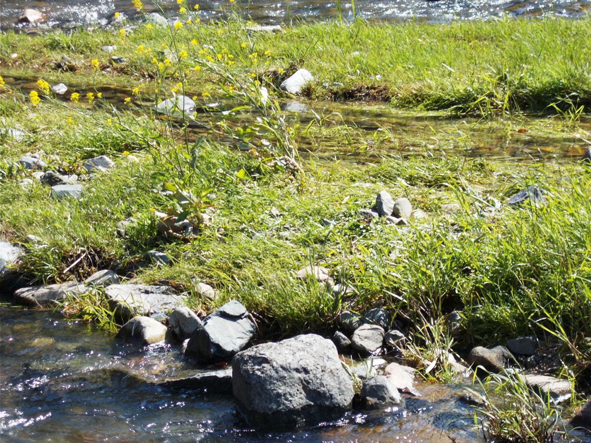 バス停そばには「音信(おとずれ)川」というしゃれた川があり、少し川眺めながら川沿いを歩く。